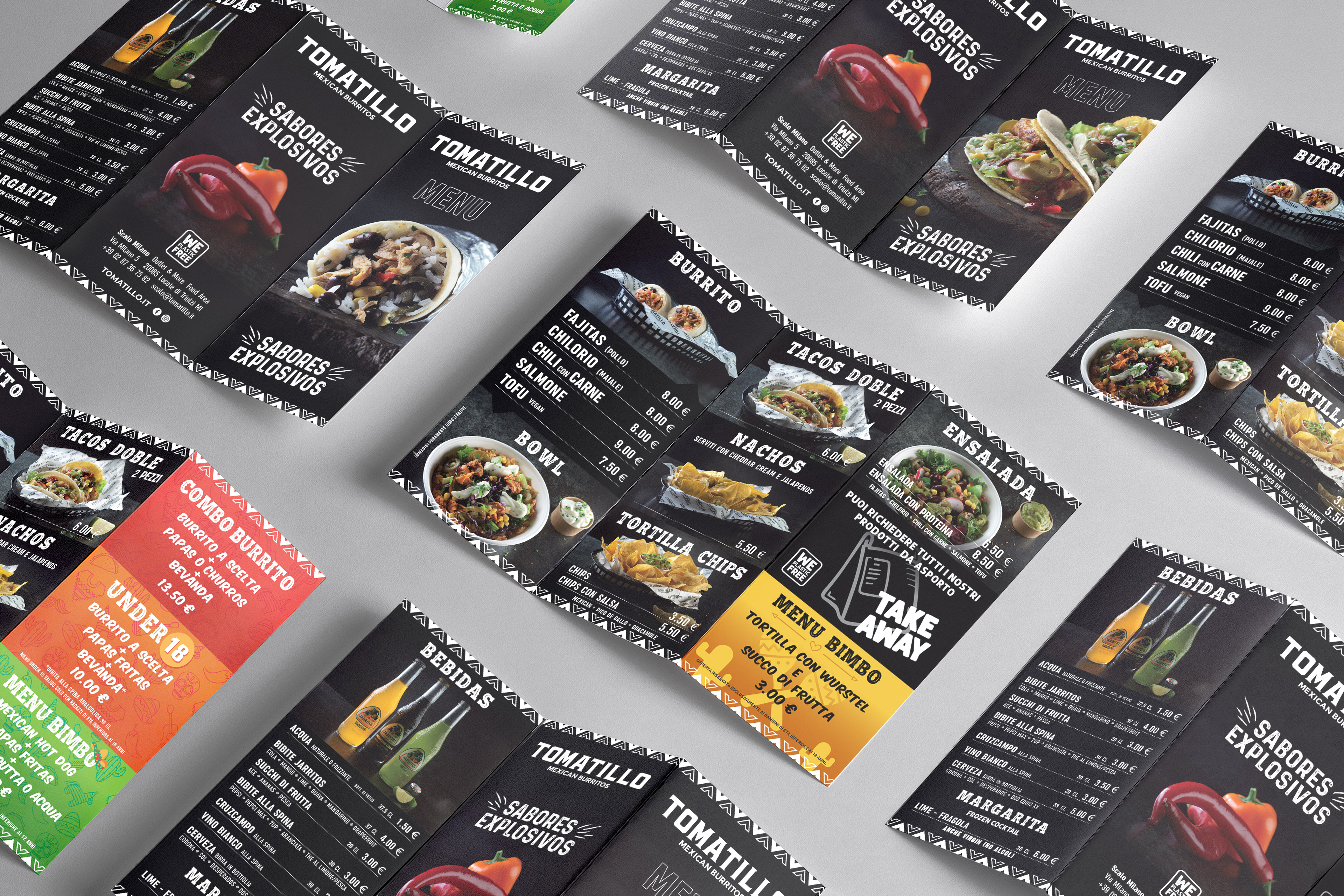 Tomatillo, attraverso il suo logo, la sua brand identity e l'allestimento del locale, esprime l'idea semplice ed immediata di una cucina veloce, genuina, gustosa